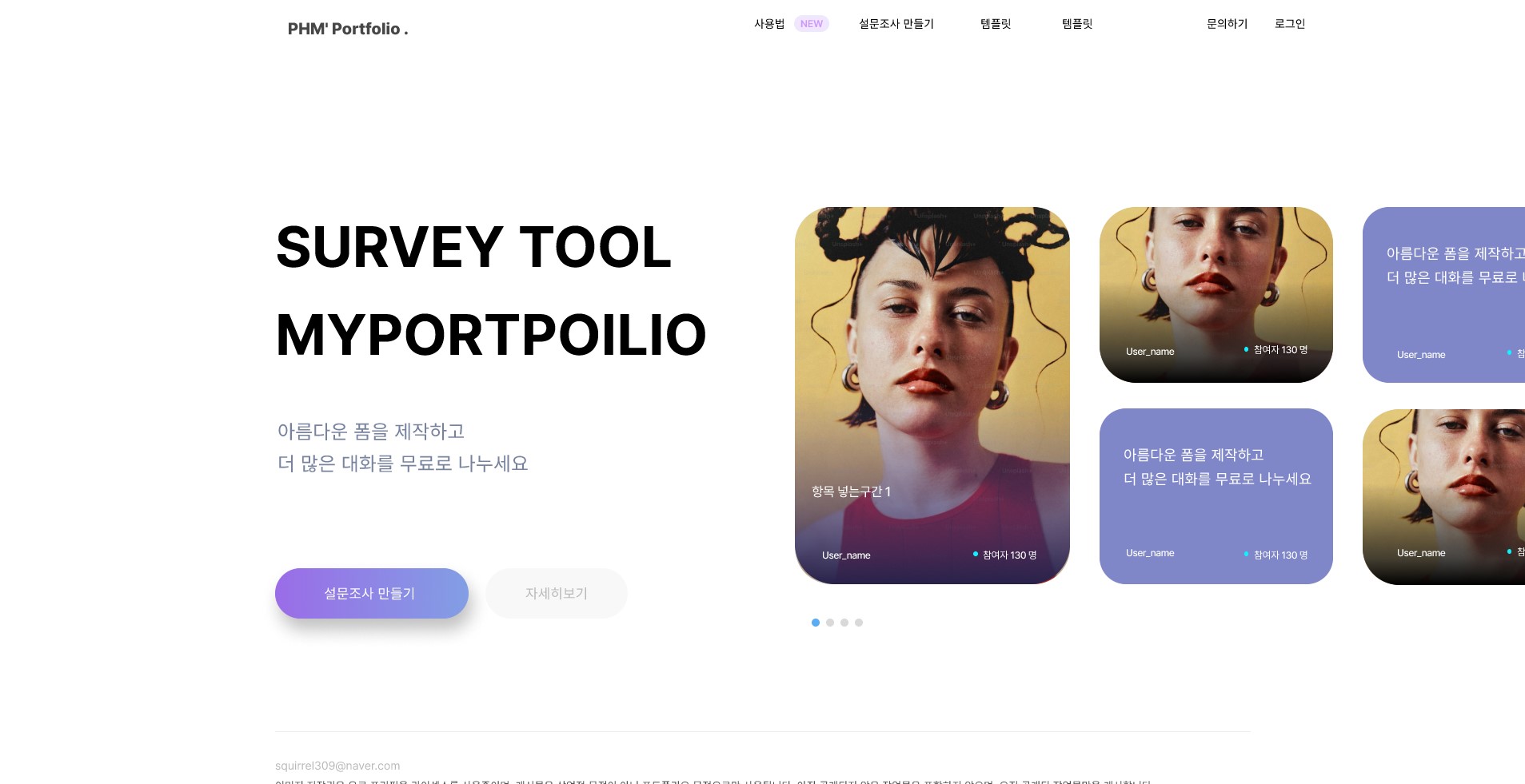 PortFolio...근래 핫한 Next.js를 공부 중에 있다.기술 습득에 있어서 가장 방법은 무언가를 구현해보면서 어디에 필요한지를 파악하며 습득하는 것이 가장 빠른 습득 방법이라고 생각한다.이 블로그 토이프로젝트 다음으로 설문조사 플랫폼을 구축할 예정이다.예로, 구글 폼이나 네이버 폼 같은 설문조사 플랫폼의 기능과 선호도 조사를 할 수 있는 플랫폼 말